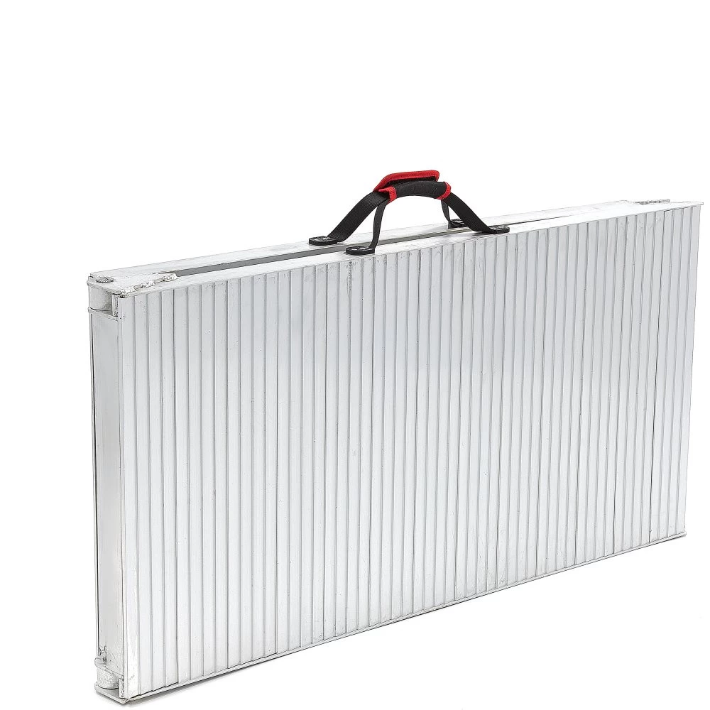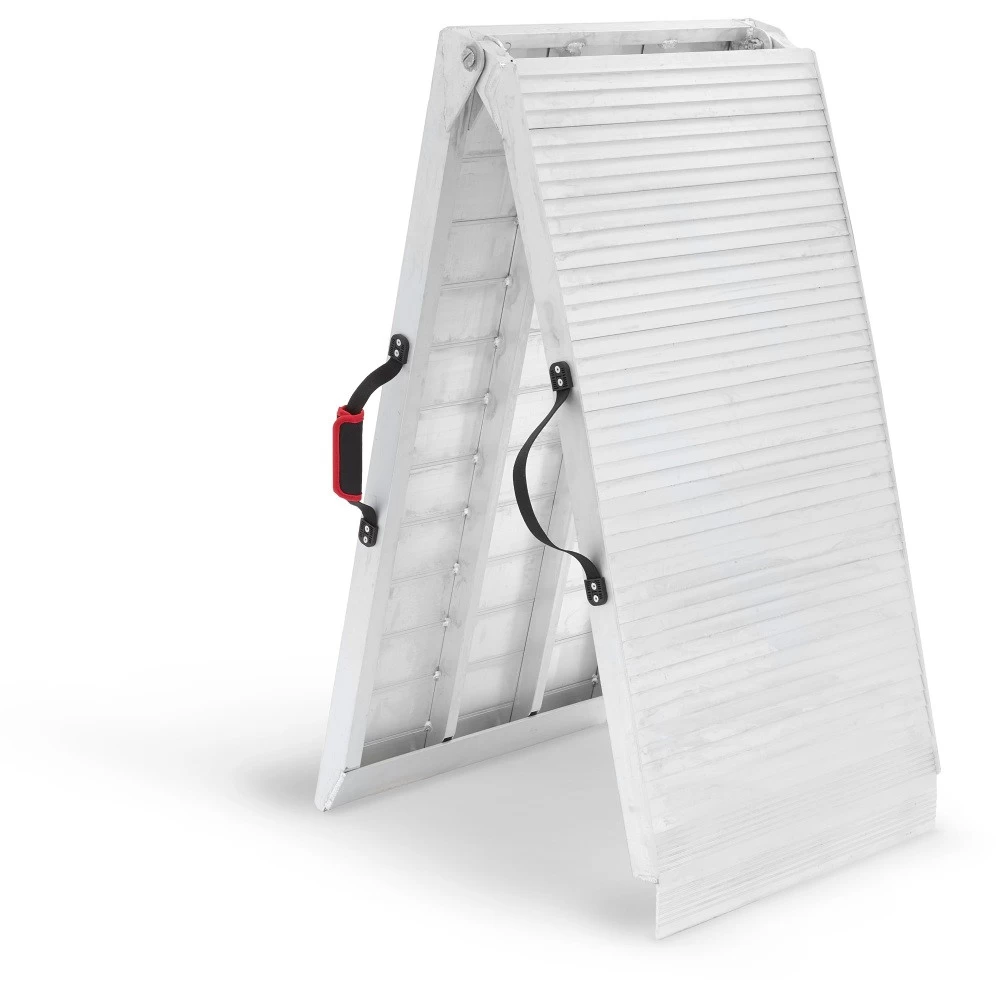 - Transport: Ergonomische Handgriffe für einfaches Tragen der zusammengeklappten Rampe