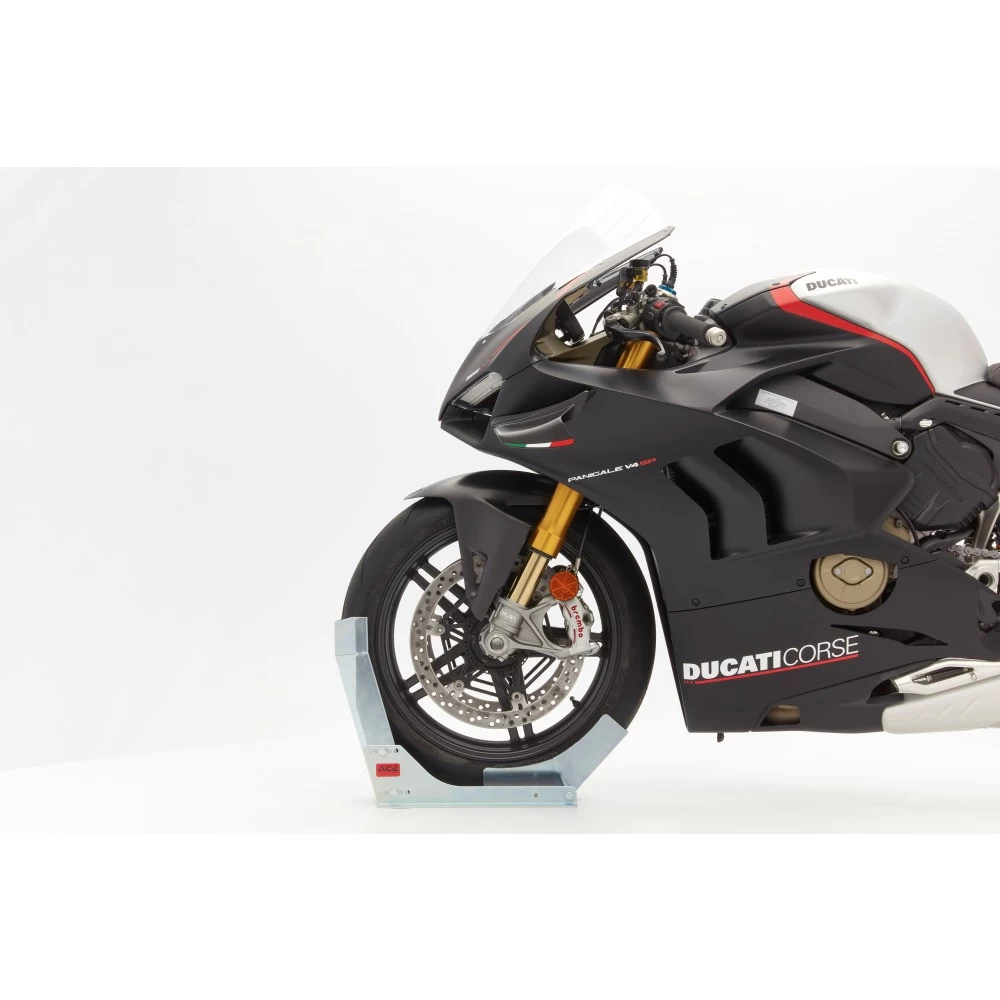 Der Acebikes SteadyStand FIXED ist konzipiert für die hohen Anforderungen des Motorradtransports. Die Verzinkung schützt das Material vor Witterungseinflüssen und gewährleistet eine lange Haltbarkeit. Die Einheit ist so entworfen, dass sie mit dem Gewicht des Motorrads arbeitet, um eine feste Verankerung ohne zusätzliche Werkzeuge zu ermöglichen. Das große Spektrum an unterstützten Reifengrößen und -breiten bedeutet, dass fast jedes Motorrad sicher transportiert werden kann.