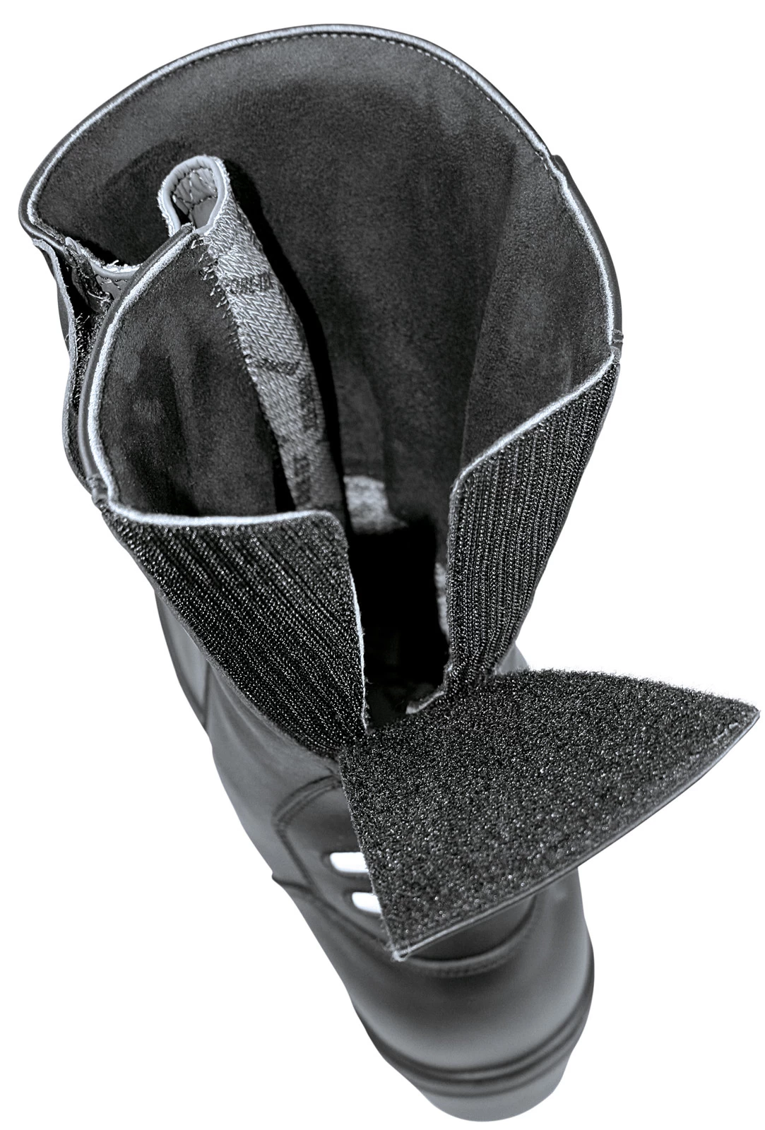 Der Damenstiefel mit großzügiger, verstellbarer Wadenweite und für 6 cm höheren Stand.