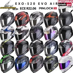 Scorpion Integralhelm EXO-520 EVO AIR Mit AirFit ECE 22.06 Sonnenblende Und Max Vision Pinlock