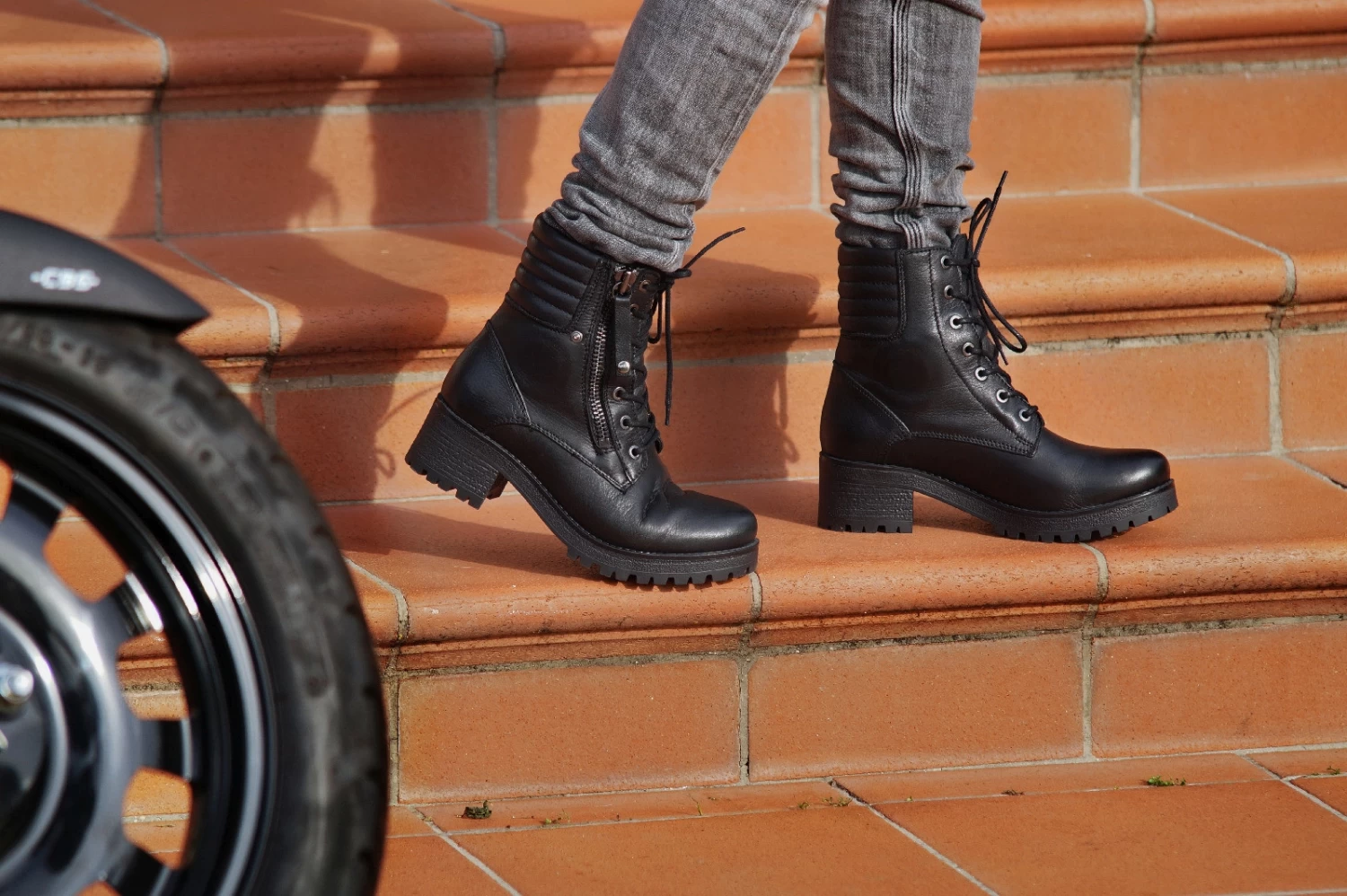 Misty, der Damenmotorradstiefel im Retro-Look. Ein bequemer und komfortabler Stiefel mit einem Absatz, der für einen sicheren Stand dient. Technische Features wurden hier mit Sicherheitsaspekten kombiniert.