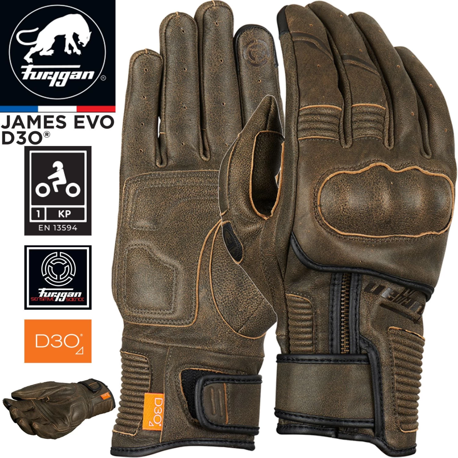 Die Besonderheiten die Furygan JAMES EVO Rusted D3O Motorradhandschuhe: