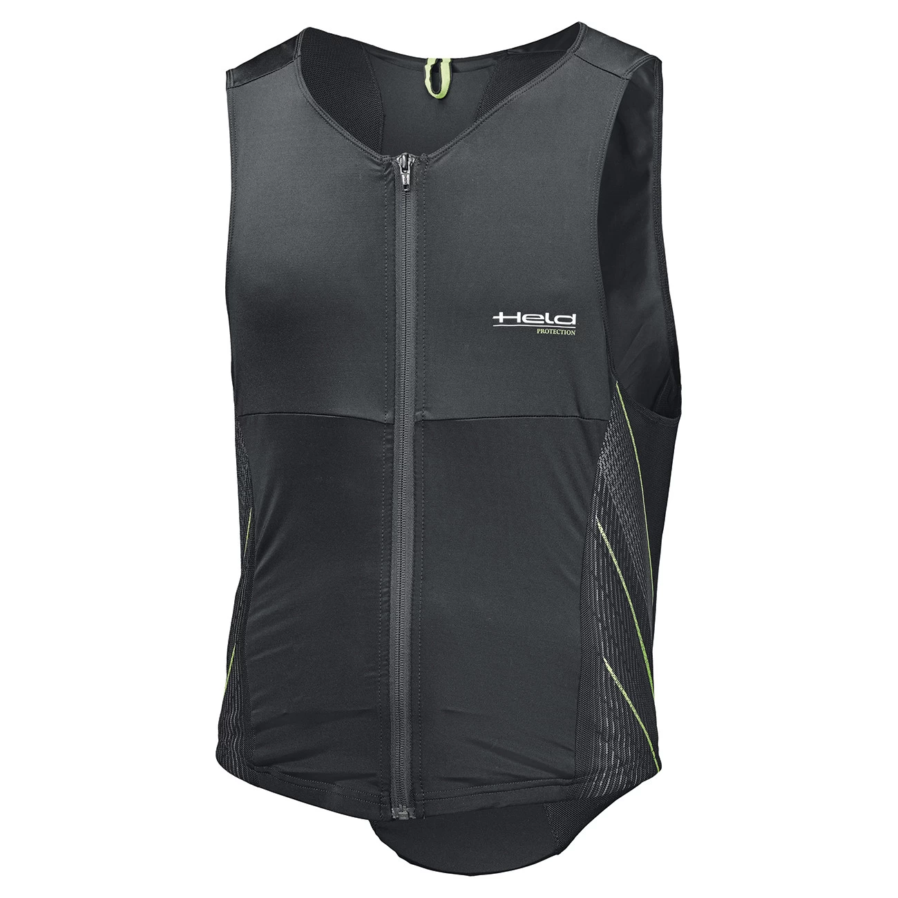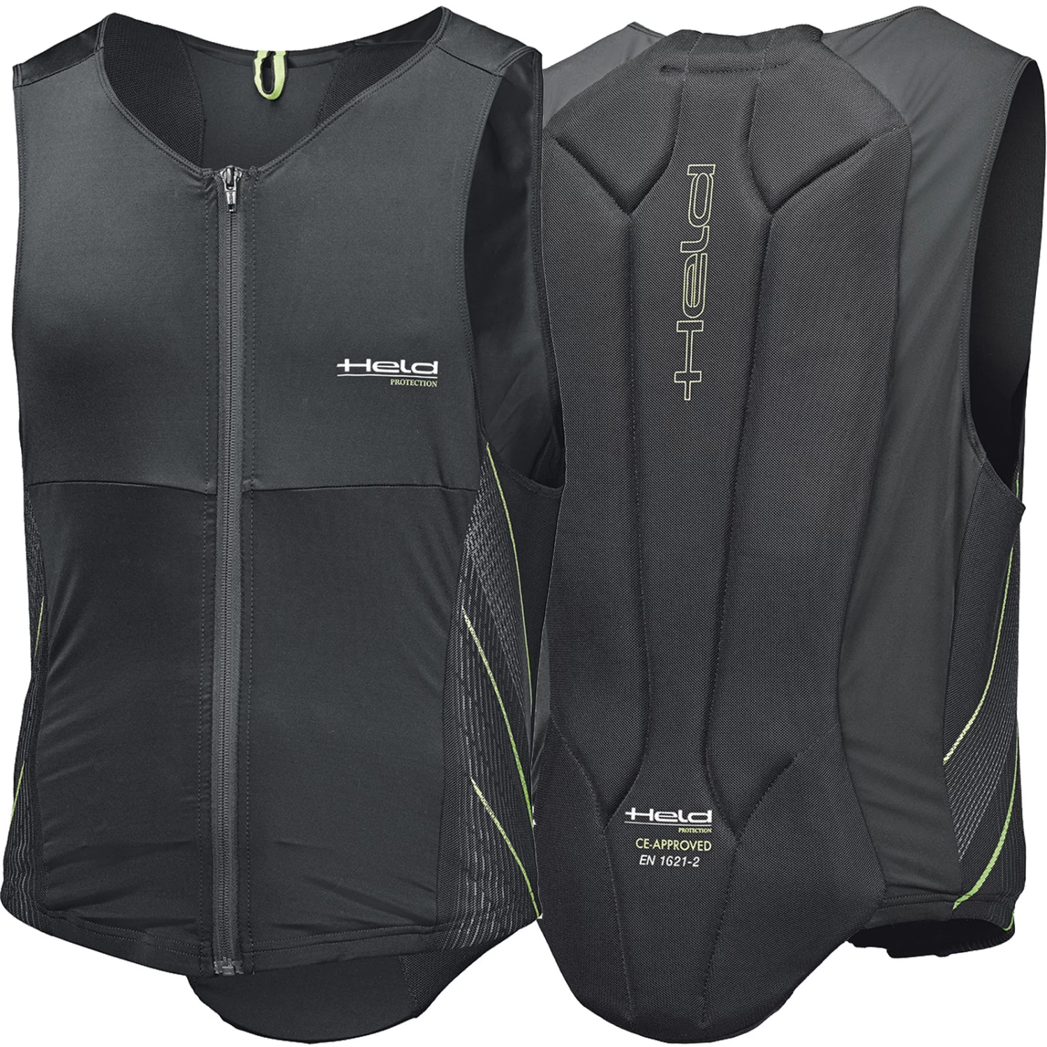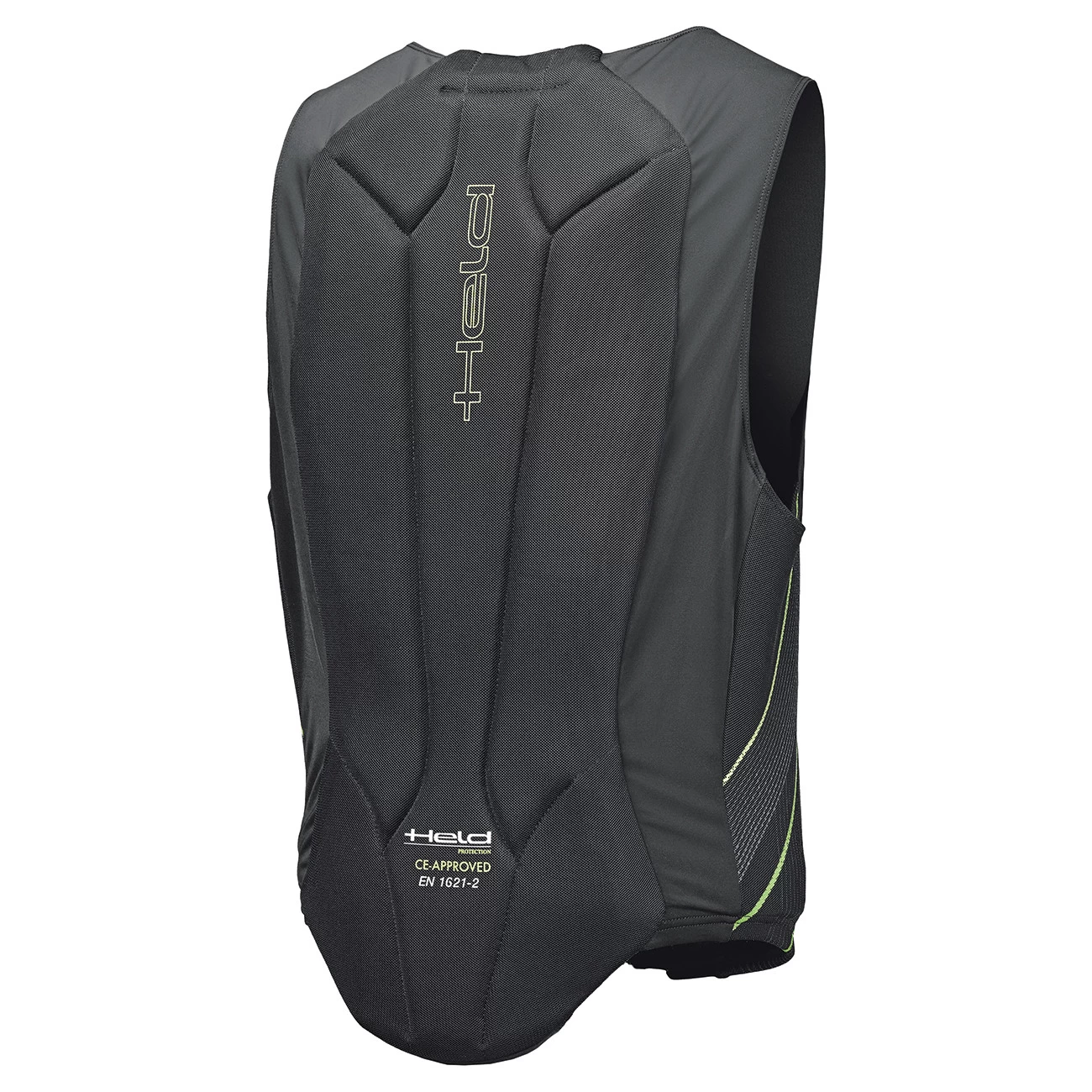 - Anatomisch geformter, flexibler Rückenschutz in mehrlagiger Sandwichkonstruktion, passt sich durch Körperwärme optimal der Wirbelsäule an.