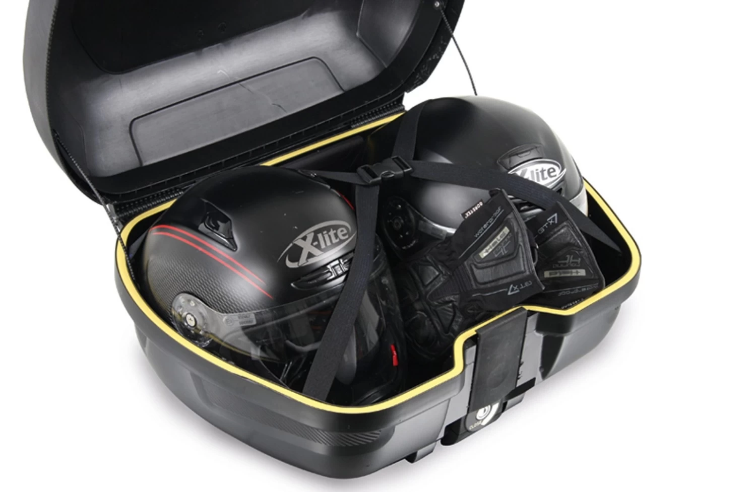 - Stauraum für 2 Helme und mehr (fast alle Helme sollten passen)
