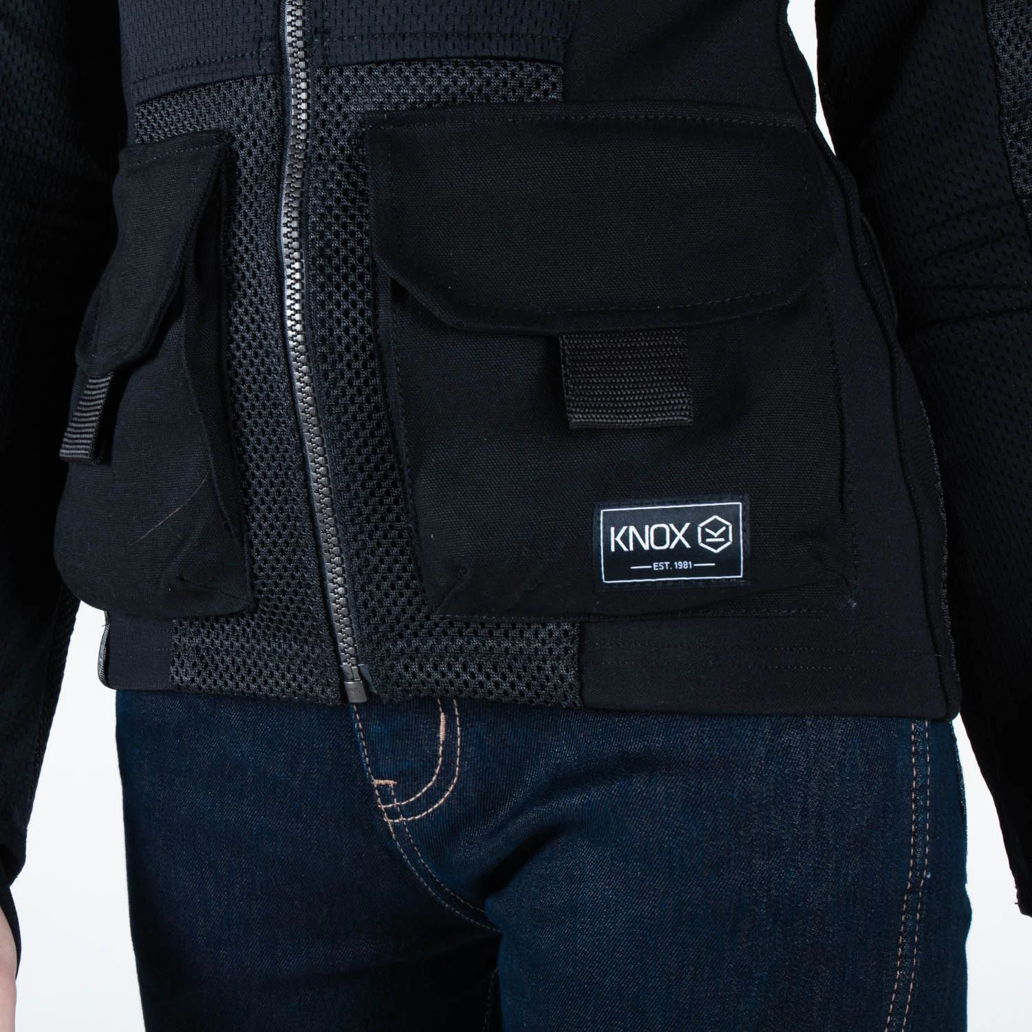 - Dezentes Knox-Branding auf Brust, vorderem Saum und Rücken