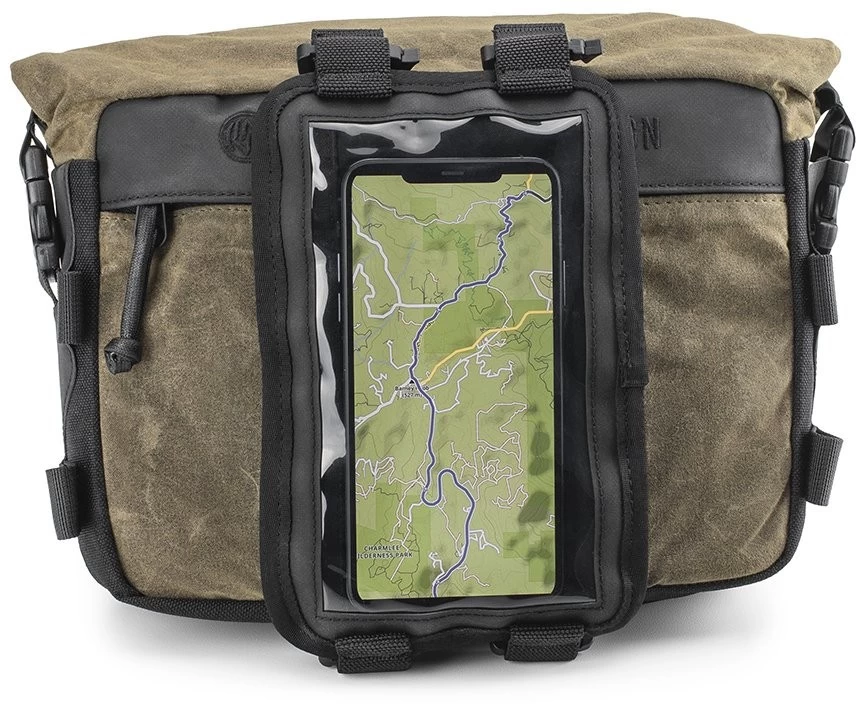 Hergestellt aus RSDs geschützter gewachster Baumwolle zusammen mit 1000D Cordura® und superrobuster Hypalon-Verstärkung, um einen klassischen Look mit modernem technischem Touch zu verleihen. Das Hauptfach ist ein wasserdichter Drypack mit Rollverschluss, der sich ideal zum Aufbewahren von wichtigen Dingen zum Trockenhalten eignet. Eine Fronttasche mit schnellem Zugriff mit Trennwänden und Schlüsselclip hält kleine Gegenstände griffbereit. Eine optionale Smartphone-Tasche kann für die Navigation im Quer- oder Hochformat mit einer berührungsempfindlichen Bildschirmabdeckung montiert oder für einen einfachen Zugriff auf die Telefonaufbewahrung umgekehrt montiert werden. Erhältlich in 2 Farboptionen: Schwarz oder Ranger.