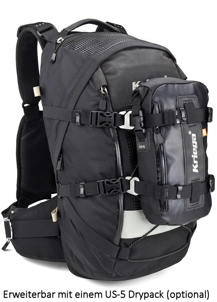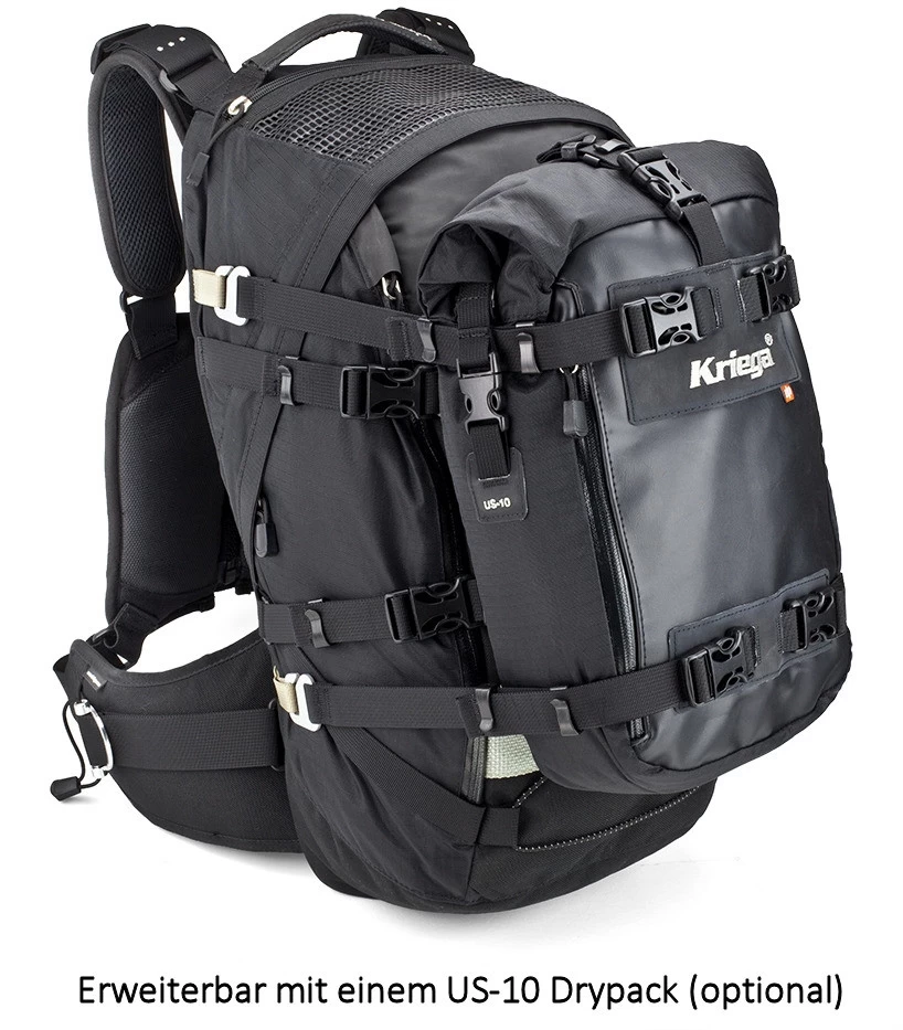 - mit US Drypacks US-5 oder US-10 für zusätzliches 5 oder 10 Liter wasserdichtes Gepäck