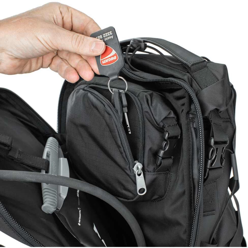 - Internes Zip-Fach mit Schlüsselclip
