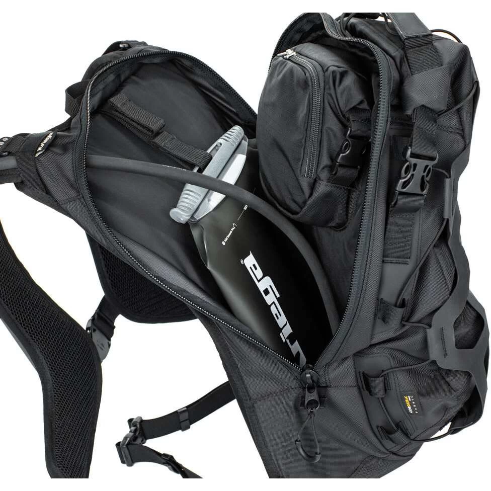 Der Kriega Trail 18 ist der Adventure-Rucksack für alle Wetterlagen, der bei der Touring-Ausrüstung neue Maßstäbe setzt. Mit dem revolutionären Quadloc-Lite™-Tragesystem und den hochmodernen Konstruktionsmaterialien übertrifft Kriega die Anforderungen jedes Abenteuerfahrers. Der Rucksack besteht aus einer strapazierfähigen 7-Liter-Hauptfach mit Reißverschluss und weiteren Fächern, welche eine perfekte Aufteilung für Werkzeug, Wasserflaschen oder optional erhältliche 3 Liter Trinksysteme bieten. Zusätzlich garantieren ein kleines wasserdichtes Innenfach sowie das Hauptfach aus Rolltop insgesamt 12 Liter zuverlässig-geschützten Stauraum. Das innovative Hypalon-Netz optimiert zudem die Lagerung von nassen oder zusätzlichen Ausrüstungsgegenständen.