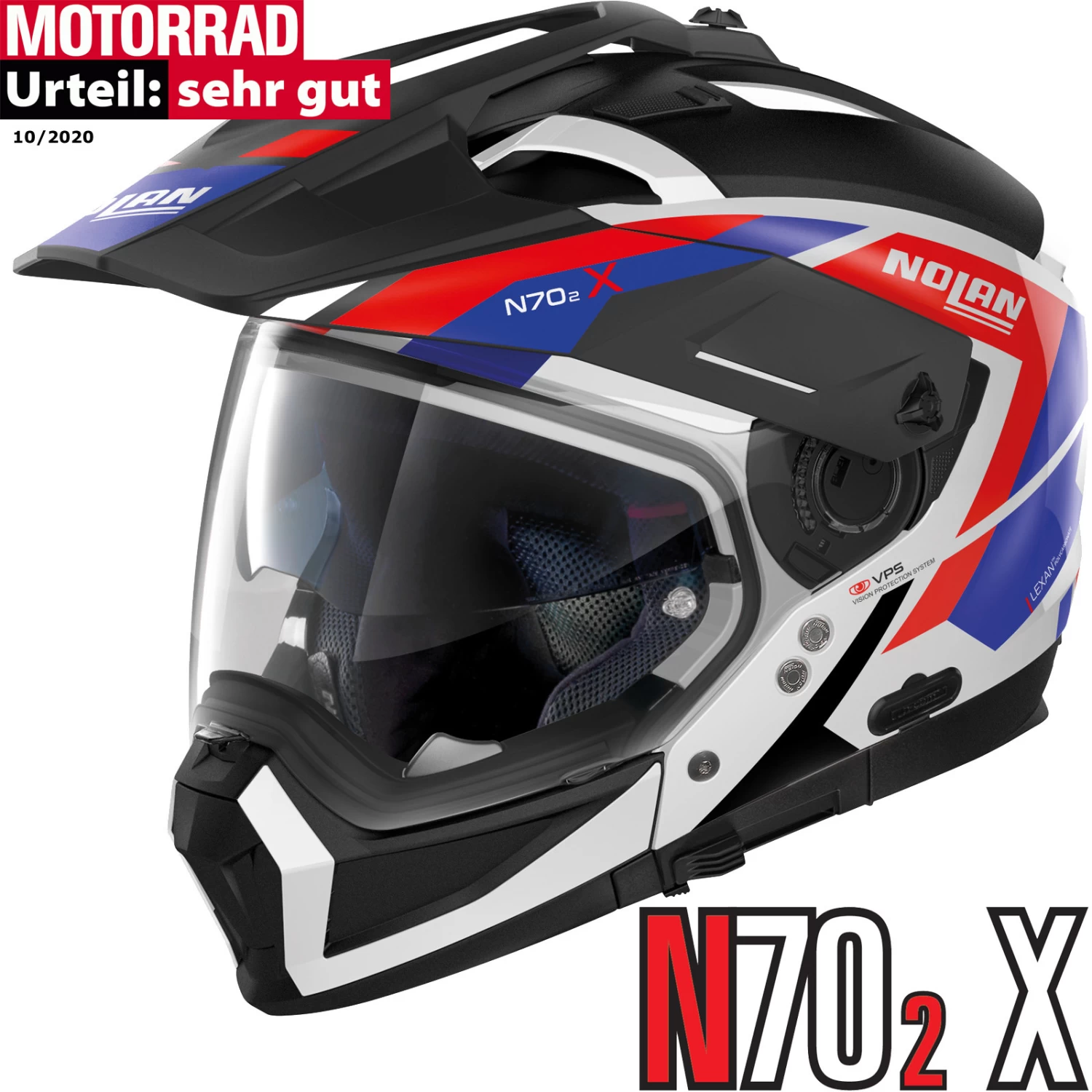 Mit den Schwestermodellen N 70-2X und N 70-2GT präsentiert die Marke Nolan zwei Crossover-Systemhelme, die mit maximaler Flexibilität und einer tollen Ausstattung punkten können. Die Motorradfahrer haben dabei die Qual der Wahl, denn der N 70-2X legt einen Schwerpunkt auf die Offroad-Optionen, während der N 70-2GT besonders für Onroad-Tourenfahrer entwickelt wurde.