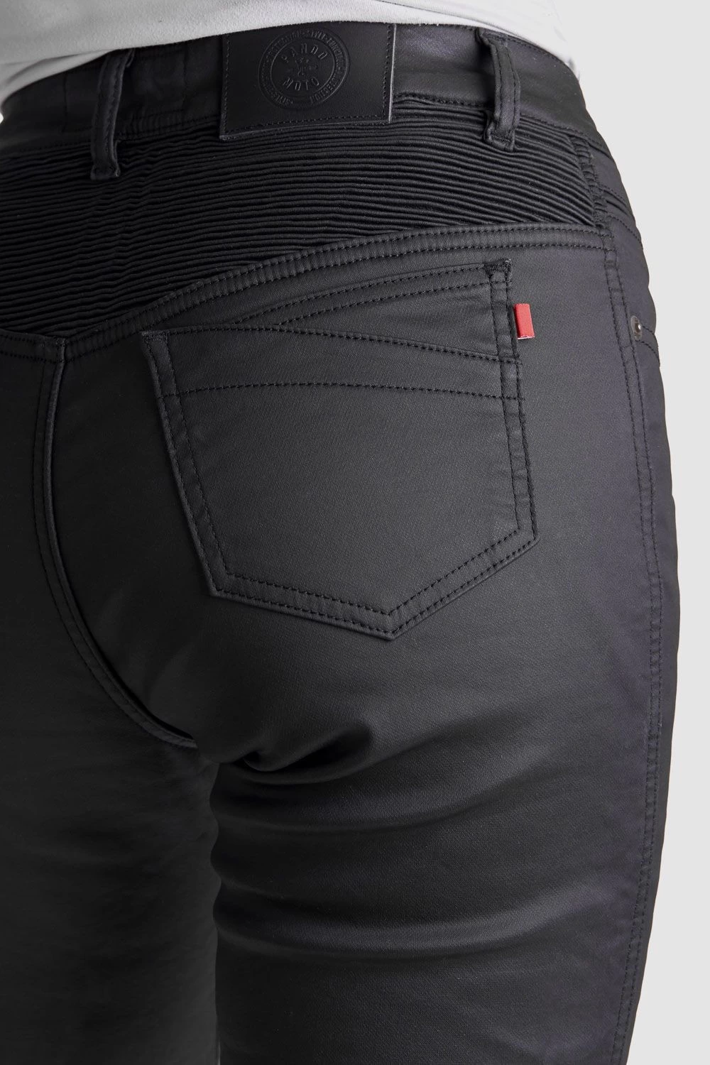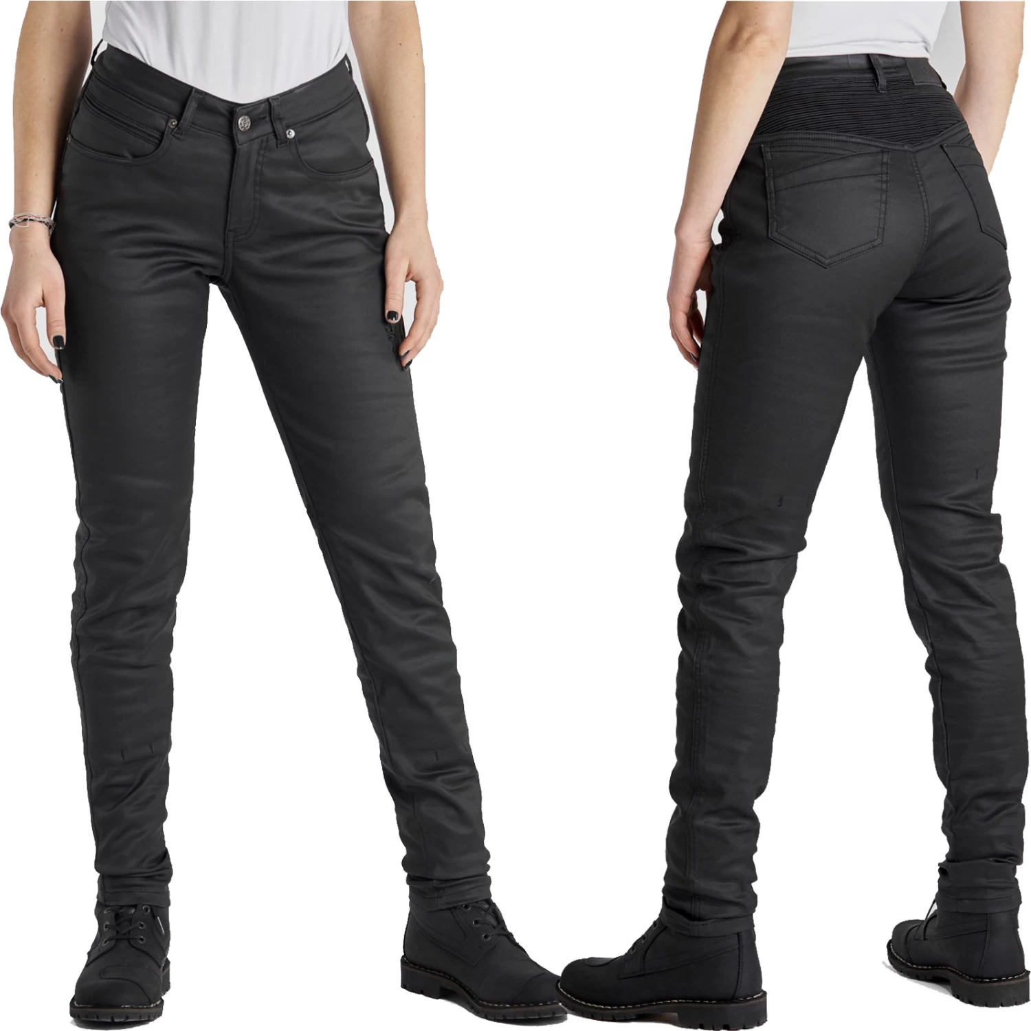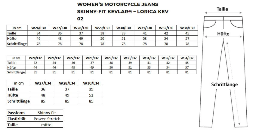 Pando Moto Lorica Kev 02 ist eine Skinny-Fit-Motorradjeans für Damen, die Sie den ganzen Tag lang tragen können. Die Oberschenkel sind nicht zu eng, die Knie nicht zu locker und durch breites elastisches Gewebe an der Innenseite besteht keine Gefahr des Hoch- und Herunterrollens. Mit 9 oz strapazierfähigem, gewachstem Powerstretch-Denim und DuPont™ Kevlar®-Futterverstärkung in risikoreichen Abrieb- und Aufprallzonen ist diese Jeans vollständig CE-zertifiziert – Performance Level A nach EN 17092.