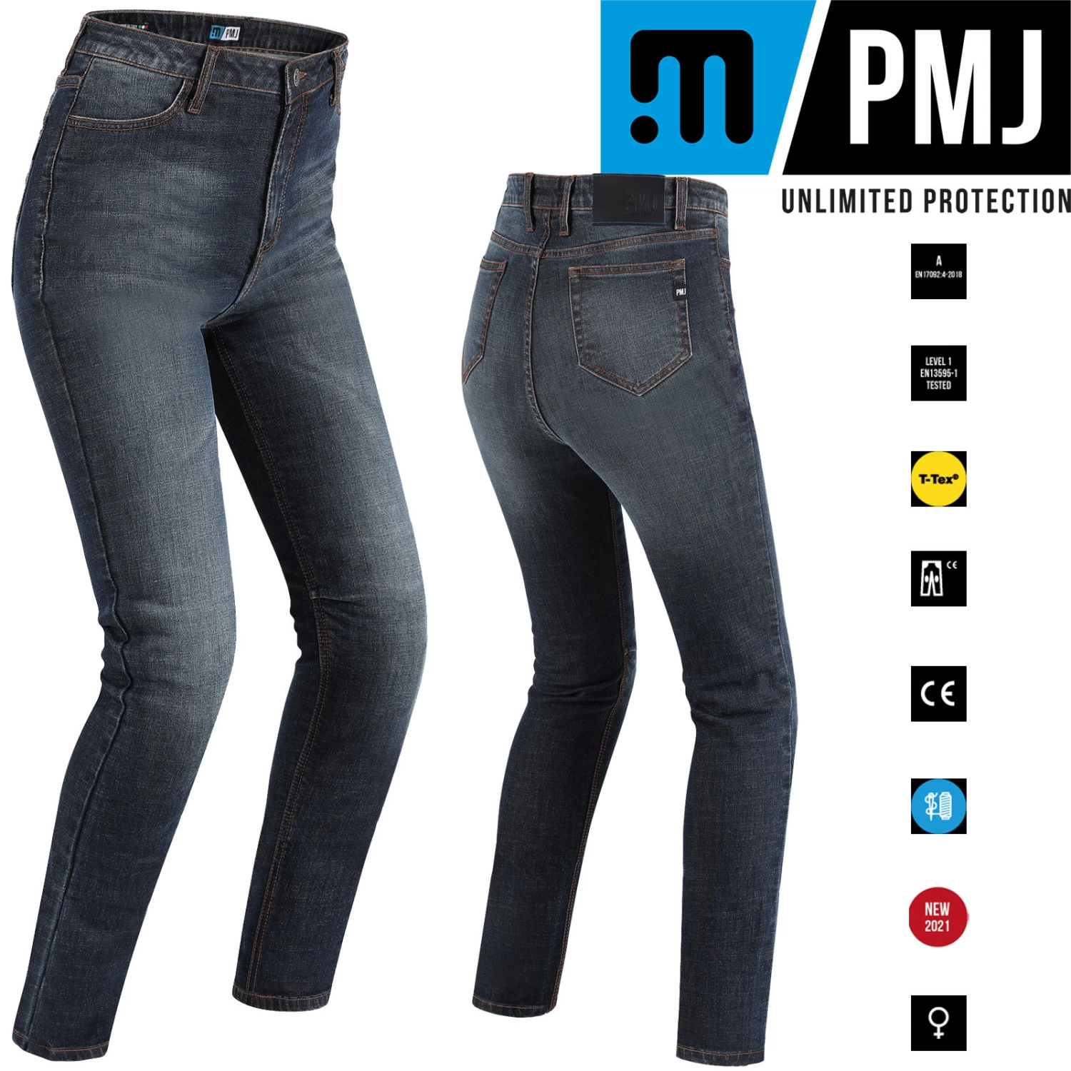PMJ High-Waist Damenjeans Sara – Slim-Fit Motorradjeans ohne Außennähte