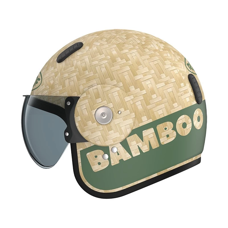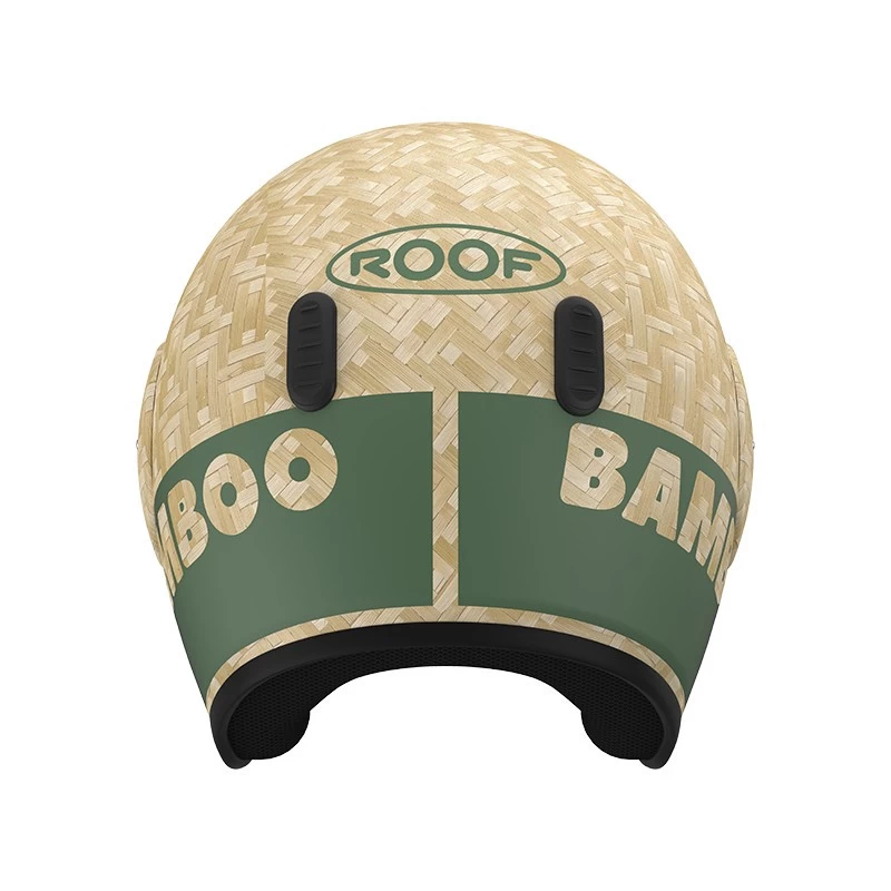 Um unseren Planeten zu schonen, zählt jede Anstrengung. Auch der BAMBOO Jethelm von Roof verwendet Öko-Materialien für seine Herstellung und Verpackung: Bambusfaser, Leinenfaser, Tusche, Naturlatex, recycelte Pappe, Wasserfarben. Bambusfaser ist eine nahezu unerschöpfliche Ressource, deren intrinsische mechanische Eigenschaften sie von Natur aus für die Herstellung prädestinieren Sicherheitselemente.