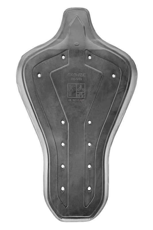 3D-Protektor aus viscoelastischem Weichschaum mit hervorragenden Schlagdämpfungswerten: Restkraft nach EN 1621-2 unter 7 kN (Grenzwert Level 2: 9 kN).