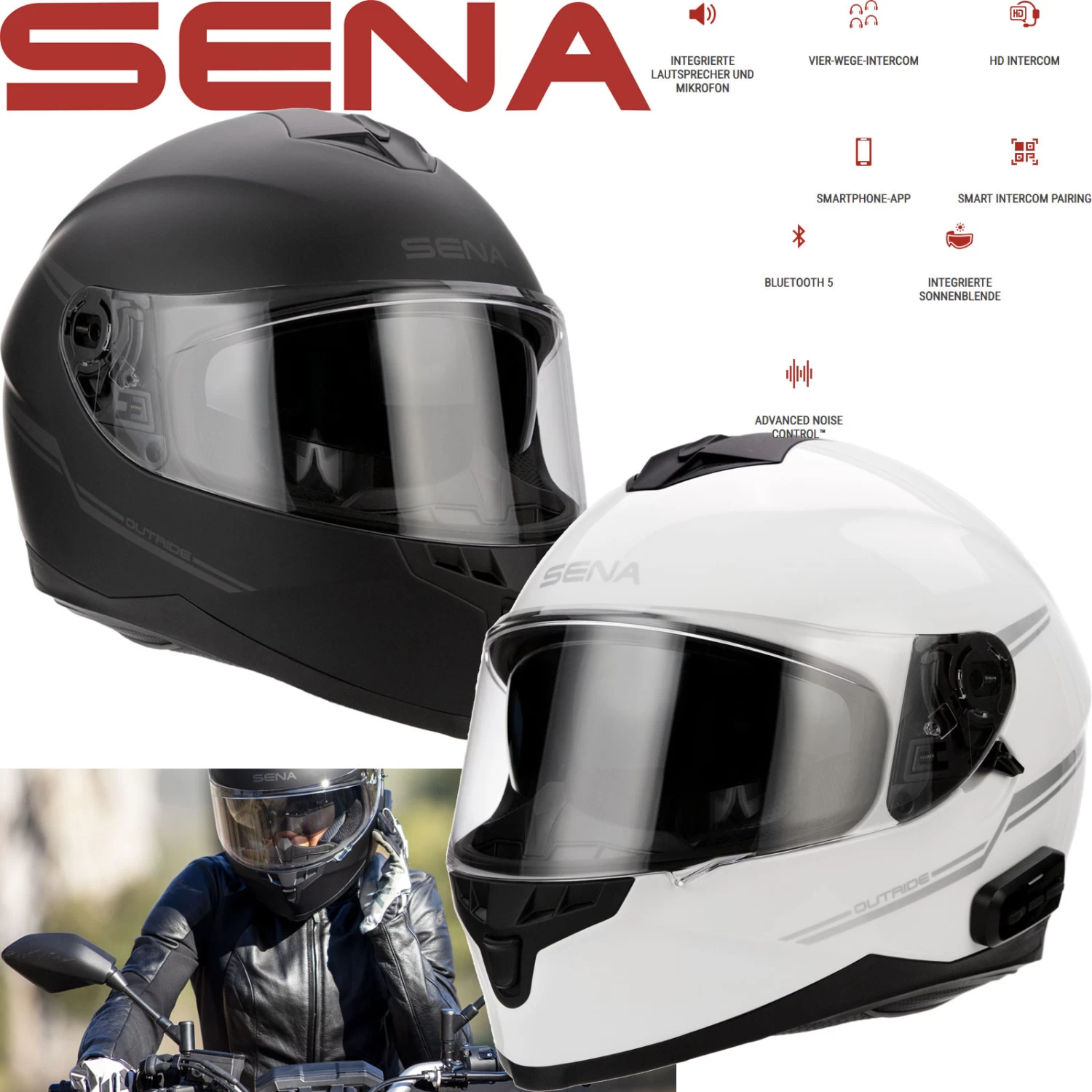 SENA Outride Integralhelm mit integriertem Bluetooth Headset