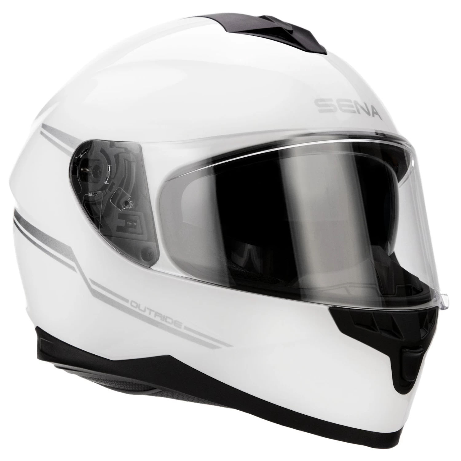 Wie bei allen Sena-Helmen liegt die Stärke dieses Integralhelms im Bluetooth-Kommunikationssystem, das nahtlos in den Helm integriert und ohne zusätzliche Installation einsatzbereit ist. Der Outride kann über Bluetooth® mit dem Smartphone verbunden werden. Dadurch haben Sie die Möglichkeit die Lieblingsplaylist abzuspielen, den Navigationsansagen zu folgen oder Telefongespräche zu führen. Dank der Audio-Multitasking kann zur selben Zeit ein Intercom-Gespräch geführt werden, während Sie Musik hören.