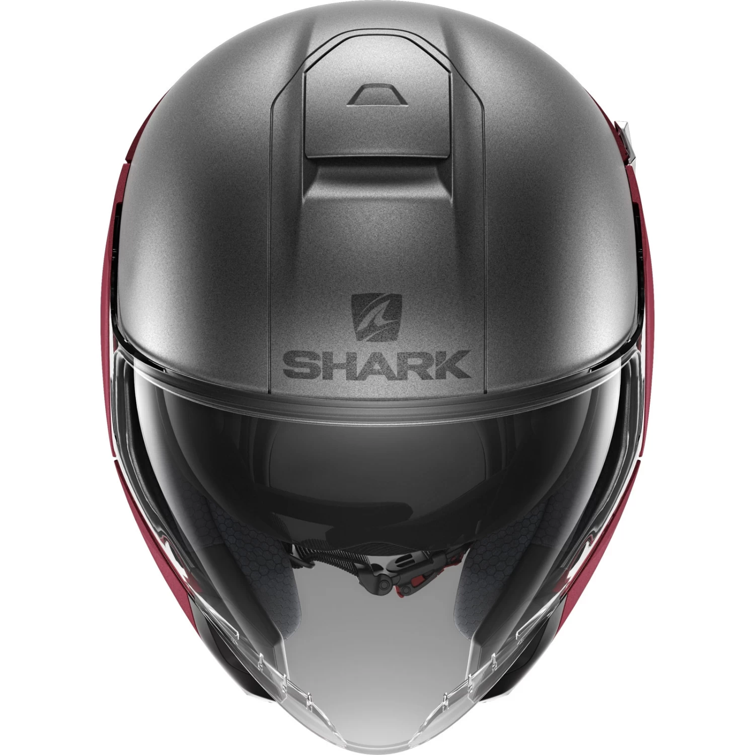 Das Außenvisier der optischen Klasse 1 mit variablen Stärken bietet eine außergewöhnliche Sehqualität. Unabhängig vom Blickwinkel wird der Beugungseffekt auf 0 reduziert. Dieses Visier hat ein weites Sichtfeld und ein Antibeschlagsystem, das von der SHARK NANO-Kollektion inspiriert ist Zwei Lufteinlässe und zwei Luftextraktoren sorgen für ein dynamisches Antibeschlagsystem.
