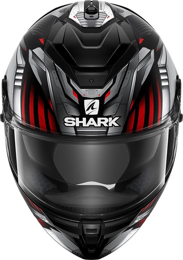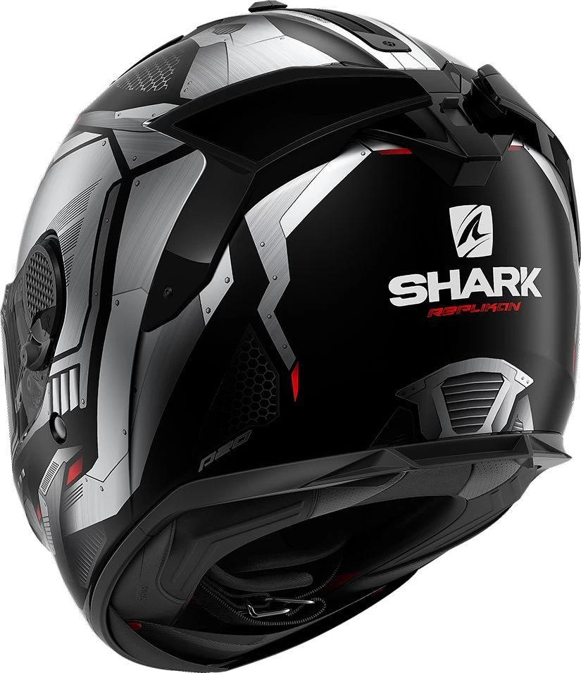 - Seitliche Befestigung des Visiers «SHARK skin» in aerodynamischem Profil zur besseren passiven Lärmreduzierung.