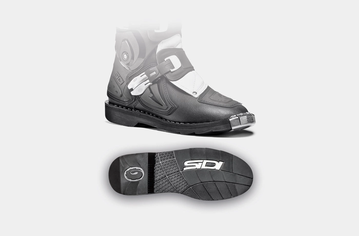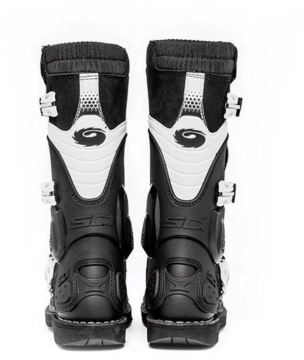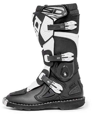 Für eine bessere Rennleistung und Sicherheit ist der Stiefel an der hinteren Stützstruktur mit einem System ausgestattet, das dem Verterbra-System ähnelt, das bei Sidi Road Racing-Stiefeln verwendet wird, wodurch es flexibler wird, und einem Gelenk, dem Flex-System, an dem die Kunststoffheilung endet.