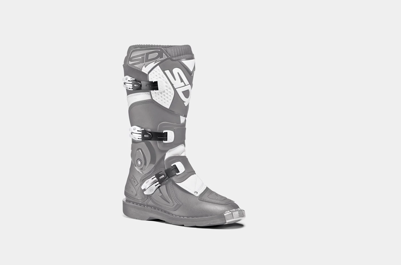 Der FLAME von Sidi verwendet ein 3-Schnallen-Verschlusssystem, bei dem jede Schnalle unabhängig voneinander funktioniert, jede bestehend aus einem gezahnten Riemen und einem Haken mit mikrometrischem Einstellspeicher. Schnalle, Riemen und Haken sind austauschbar. Die Schnallen haben nur einen Fixpunkt (über eine Schraube), der ein leichtes Schließen gewährleistet, so dass sich der Stiefel an das Bein des Fahrers anpasst und mehr Komfort bietet.
