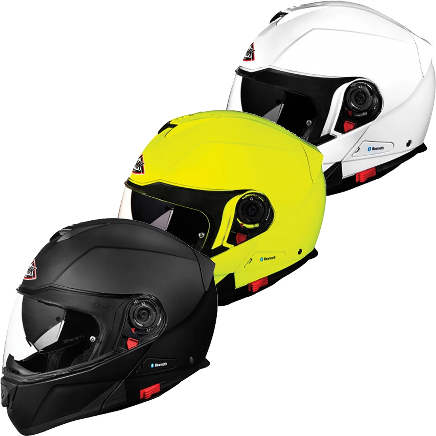 Ein effizientes Belüftungssystem bietet dem Fahrer maximalen Komfort, auch auf langen Strecken und bei allen Wetterbedingungen. Das extra breite Visier bietet dem Fahrer eine hervorragende Sicht auf die Straße. SMK Glide bietet eine Reihe aufregender Funktionen wie eine einziehbare Sonnenblende und Windstopper. Integrierte angepasste Bluetooth-Add-Ons sind ebenfalls verfügbar.