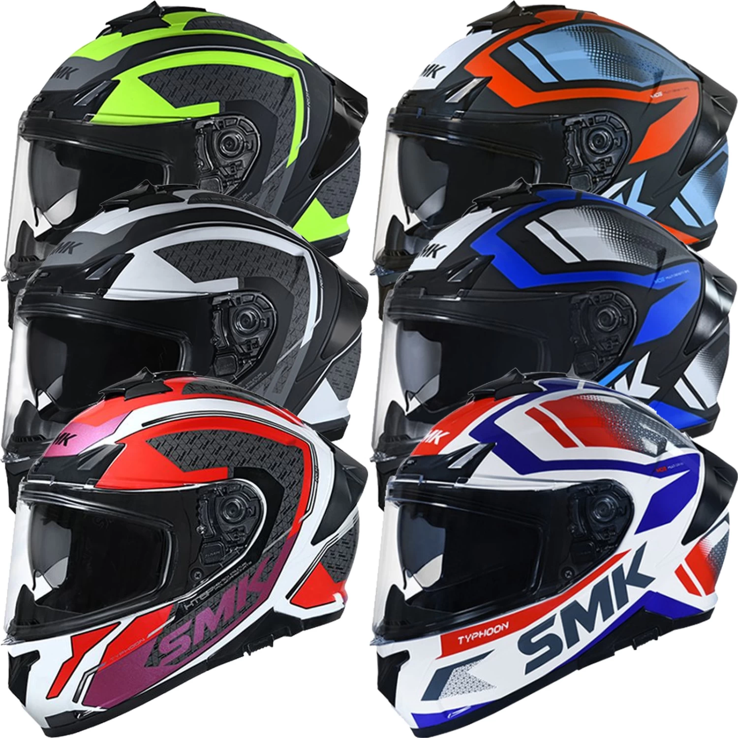 Der SMK Typhoon ist ein Fullface-Motorradhelm für alle Sporttourer mit kompaktem und aerodynamischem Schalendesign. Aufgewertet mit tollen Grafiken oder einfach nur einfarbigen Farben, bietet es pures Fahrvergnügen. Ein komplettes System aus Mund-, Seiten- und oberen Belüftungsöffnungen, eine einfach zu bedienende innere Sonnenblende ermöglichen es jedem, die Fahrt bei allen Wetterbedingungen in voller Sicherheit zu genießen.