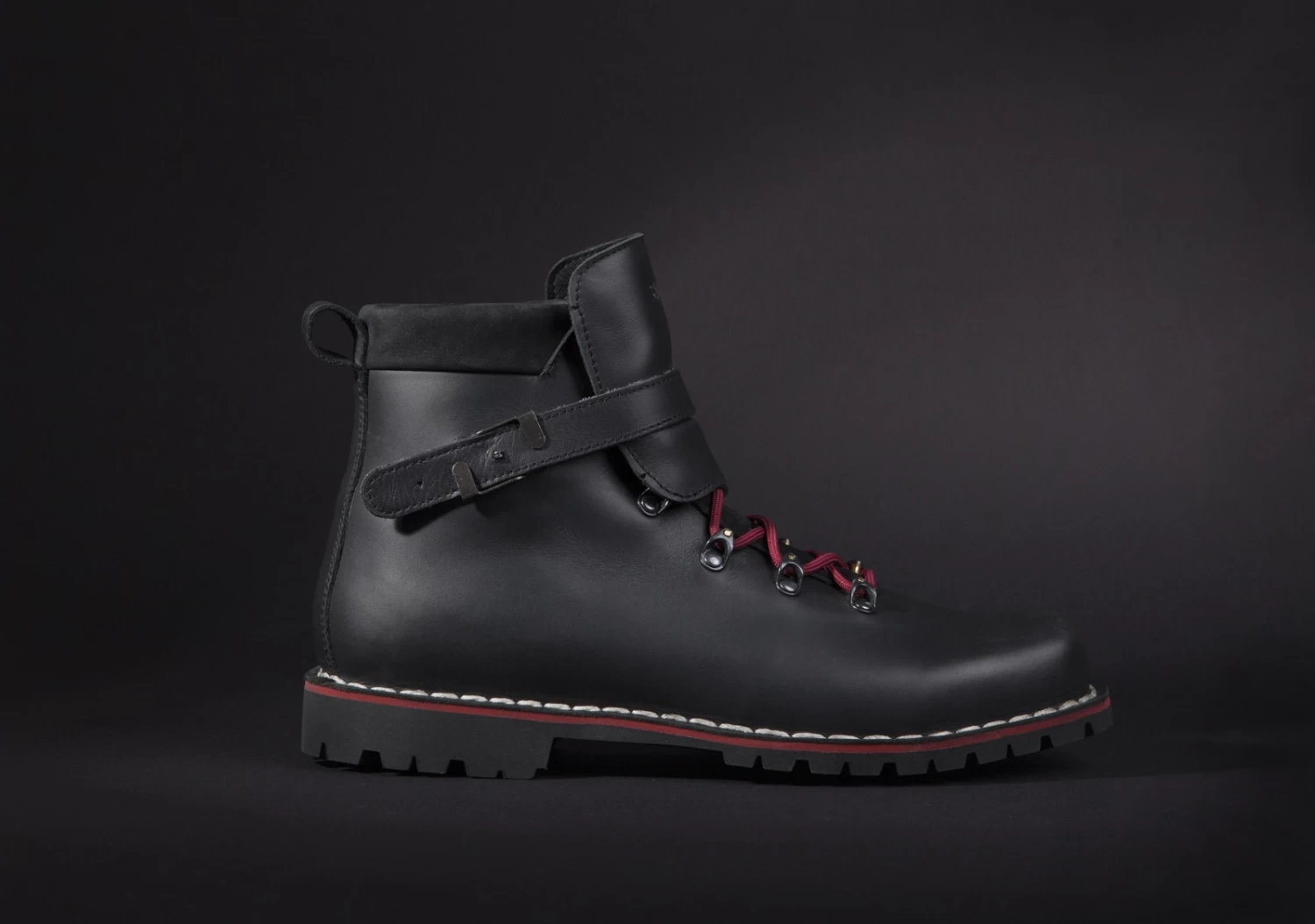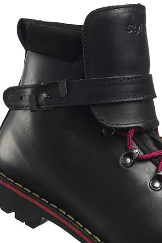 - breite Lederschnalle als Abdeckung für die Schnürung
