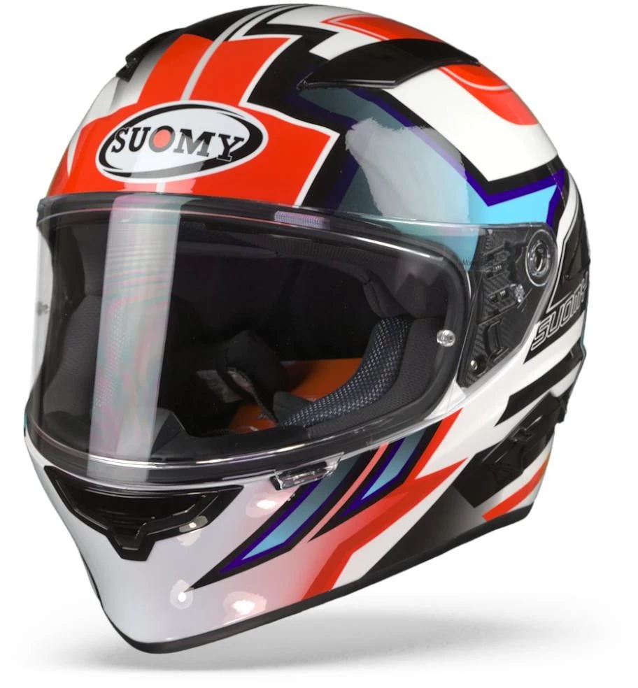 Der ehrgeizige Speedstar ist die Suomy-Intuition, die mit mehr als 20 Jahren Erfahrung in Wettkämpfen ein neues Konzept eines vielseitigen Sporthelms bietet. Häufige Windkanalsitzungen, die als Rennhelm getestet wurden, ermöglichten dynamische Formen, einen starken aerodynamischen Koeffizienten und eine beneidenswerte Gesamtbalance. Die Abteilung für Forschung und Entwicklung, Design und Reittests hat ein Paket von Lösungen entwickelt, die Komfort, Vielseitigkeit mit atmungsaktiven technischen Stoffen, doppeltem D-Ring-Kinnriemen und ausgewogener Passform für jede Art von Reiten verbessern. Das neue Einspritzvisier in der optischen Klasse 1 und variabler Dicke mit Pinlock Max Vision gewährleistet die beste Sicht aus verschiedenen Fahrwinkeln. Der unbearbeitete Wide-Sunvisor erstreckt sich bis zu den Rändern der Wangenpolster und bietet einen vollständigen Schutz vor Sonnenlicht.
