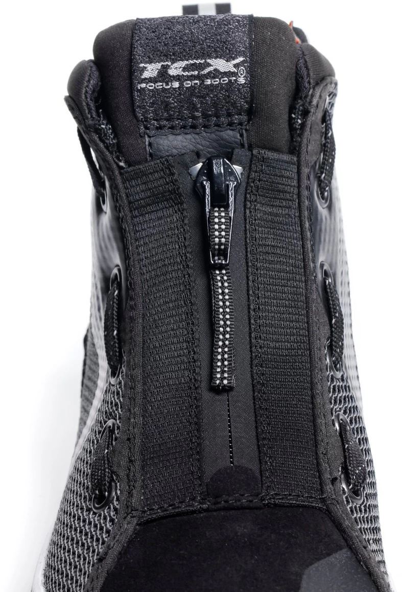 Dank der Z-Form wird Seitensteifigkeit für maximale Sicherheit und Längsflexibilität kombiniert. Mit Zplate® folgt der Schuh den natürlichen Bewegungen Ihres Fußes, egal ob Sie im Sattel sitzen oder gehen. Gleichzeitig schützt diese Technologie vor dem Zusammendrücken des Schuhs bei einem Aufprall. Das Obermaterial besteht aus reflektierendem Mesh-Gewebe mit Wildledereinsätzen und hat seitliche Schnürsenkel. Die Vorderseite hat einen elastischen Reißverschluss, der das An- und Ausziehen erleichtert. Die abriebfeste Groundtrax®-Sohle verfügt über ein strukturiertes Profil, das für maximalen Halt auf jedem Untergrund sorgt.