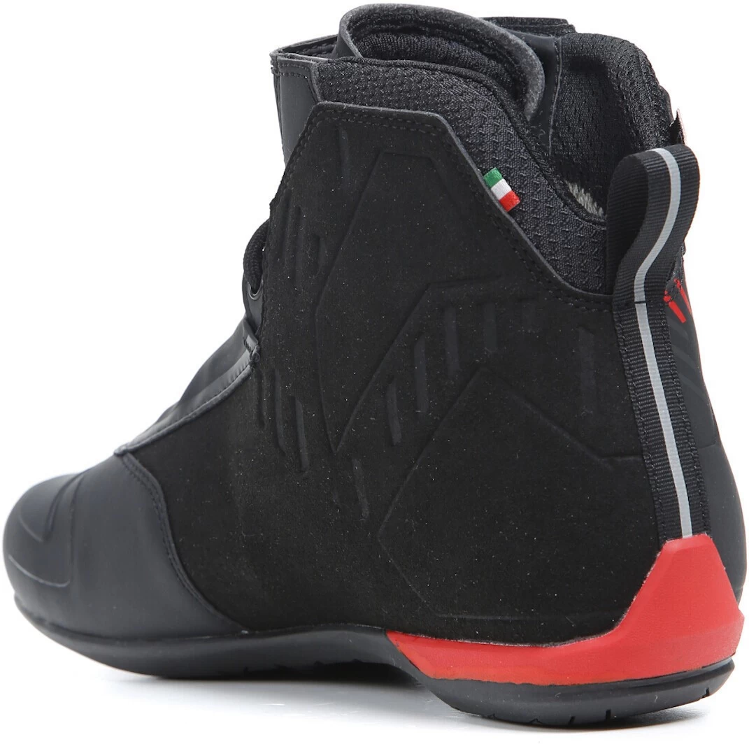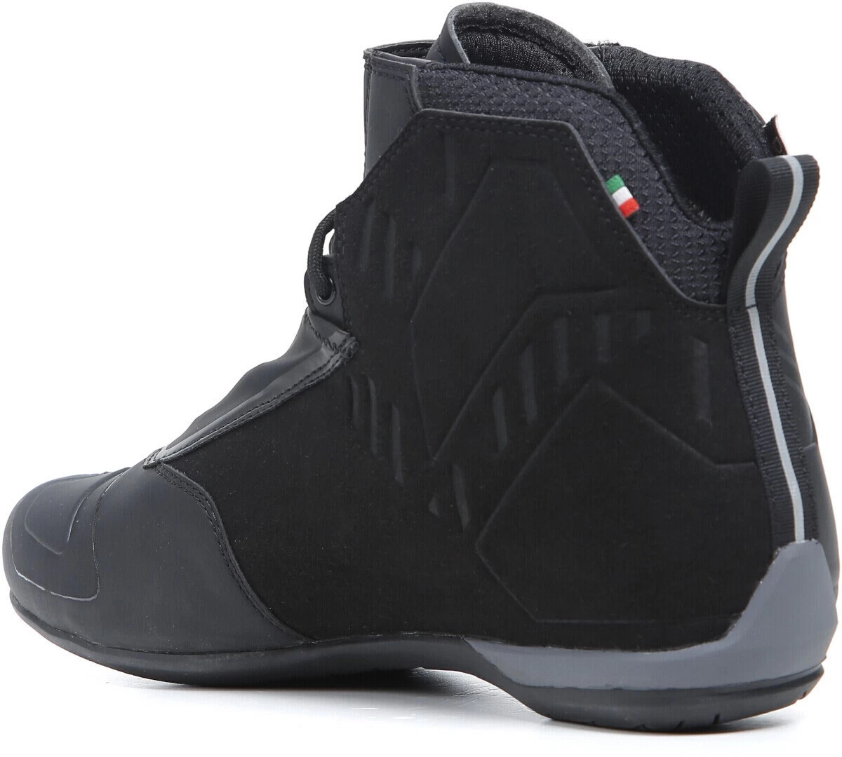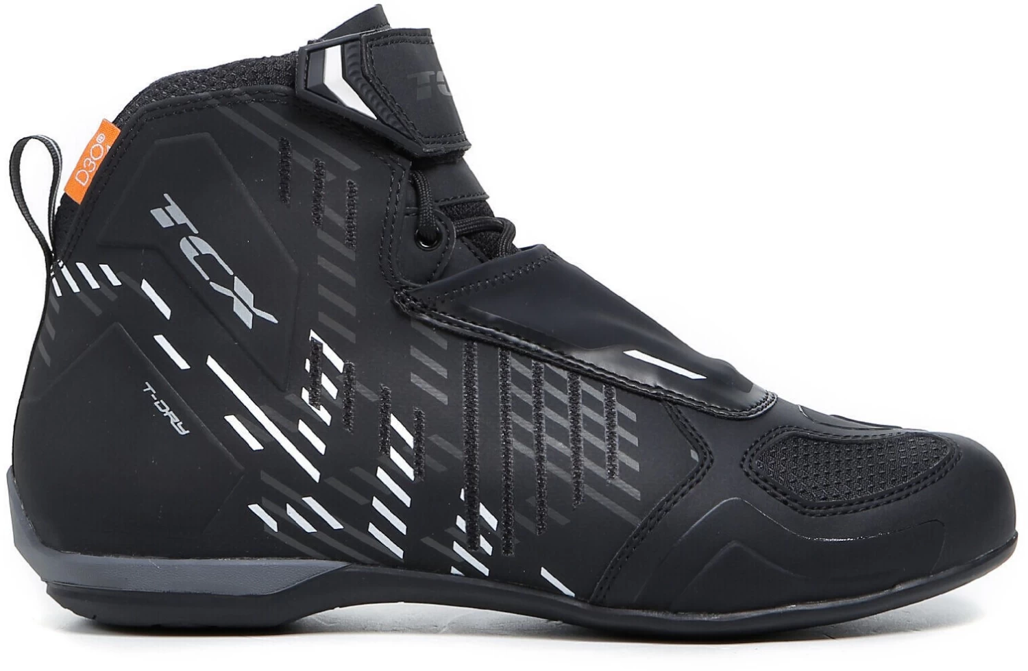 Die undurchlässige T-DRY-Membran bietet vollständigen Schutz vor Wasser und Witterungseinflüssen und bietet Ihren Füßen perfekten Komfort bei allen Bedingungen. Ein Obermaterial aus Mikrofaser sorgt für ein hohes Feingefühl und eine präzise Passform beim Fahren. Der R04D WP verfügt über einen Schnürverschluss am Kragen, Gamaschen und einen verstellbaren Klettverschluss. Riemenschutz aus Bicast-Leder und reflektierende Elemente auf der Rückseite sorgen für maximale Sicherheit.