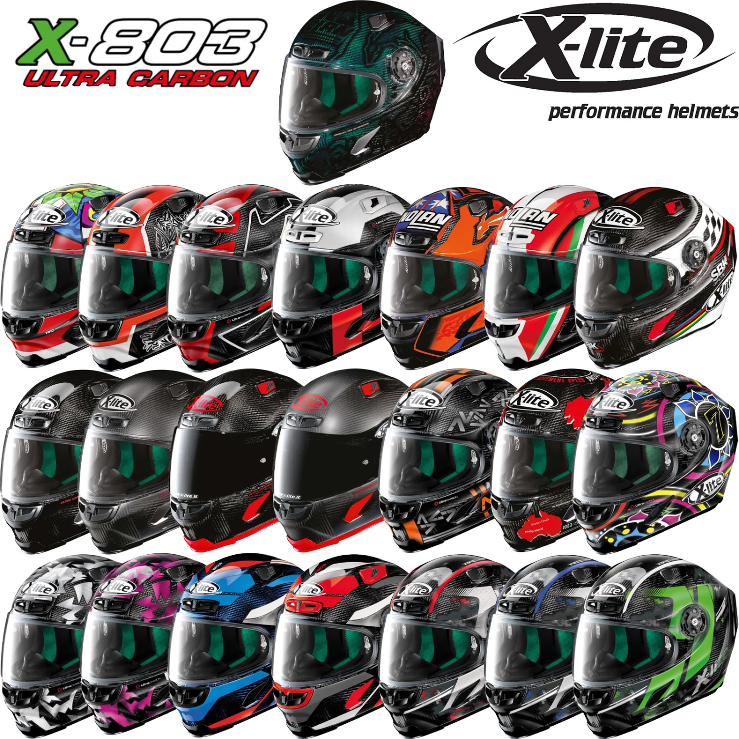 Wie alle Xlite RaceReplica Helme wurde auch der X803 auf maximale Sicherheit, maximale Rennfunktion und minimales Gewicht optimiert. Schon die Standardversion des X803 mit „Composite Fiber“-Außenmantel erreichte ein Rekordtief. Ein weiterer Vorteil von bis zu 110 Gramm (je nach Helmgröße) gegenüber dem Standardmodell ist der X803 Ultra Carbon, der über eine komplett handgefertigte Schale aus ultraleichtem Kohlefasergewebe verfügt.